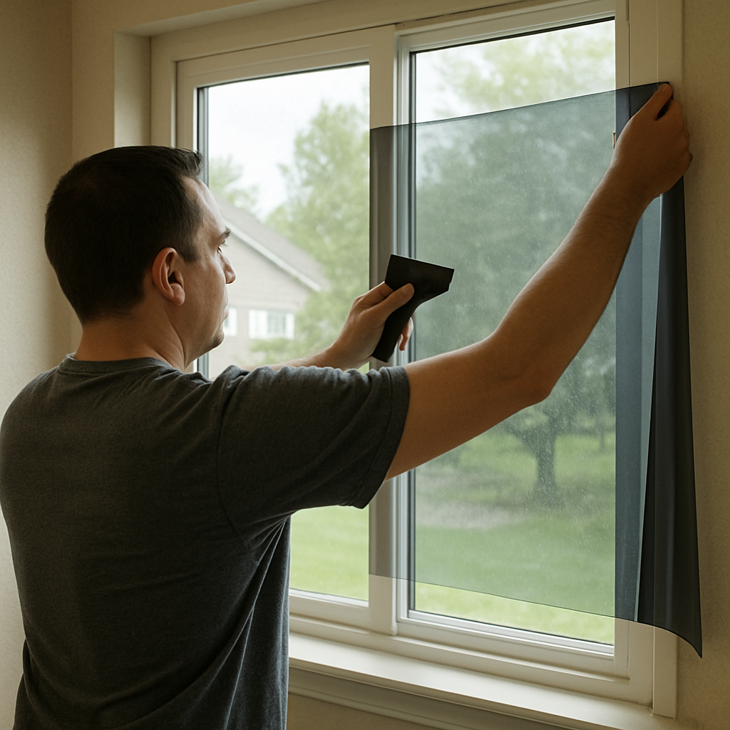 Apply the film starting from the top of the window, using a squeegee to smooth out bubbles and ensure a firm bond. Trim any excess film from the edges for a clean look.